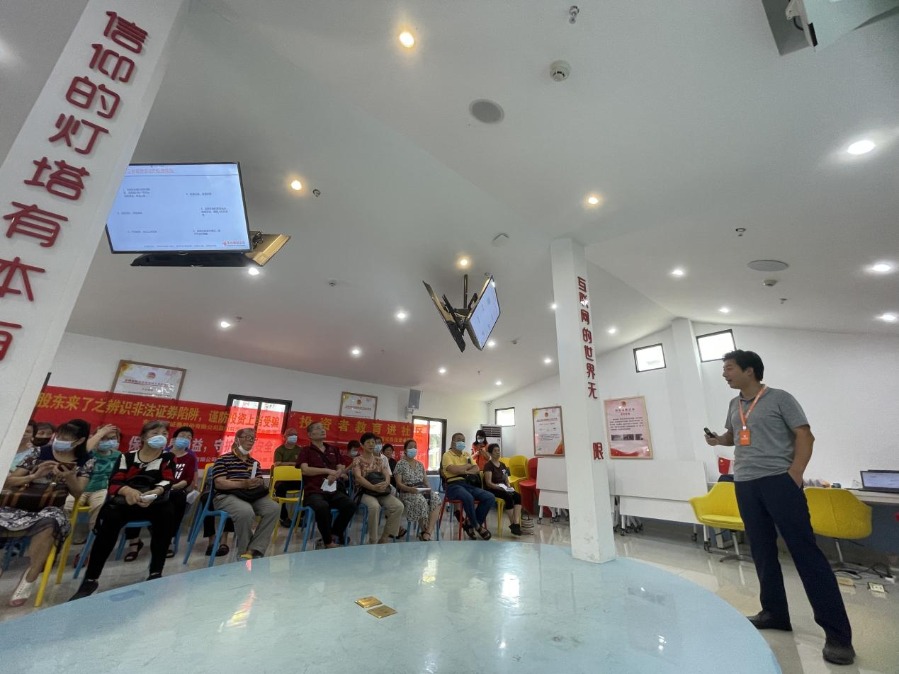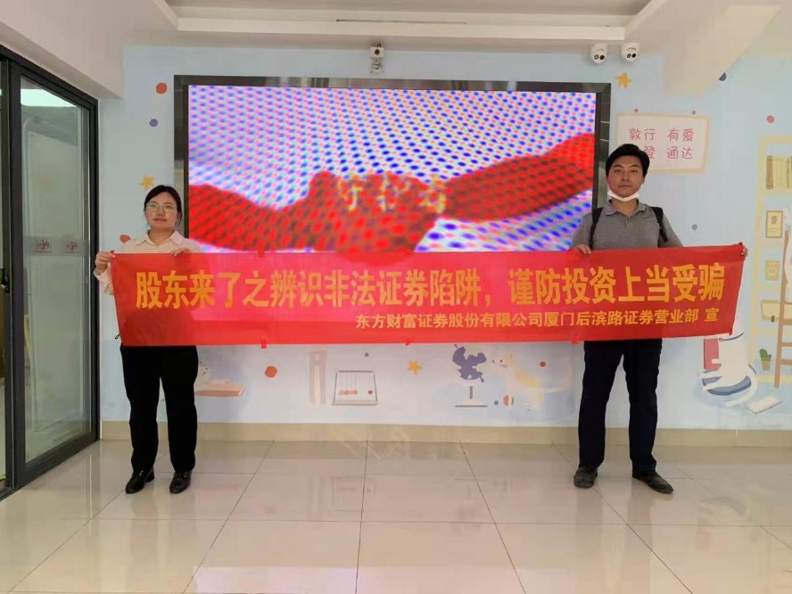 2022年6月1日,东方财富证券投资者教育基地联合厦门市思明区下沃社区居委会举办了一场“股东来了之辨识非法证券陷阱,谨防投资上当受骗”主题宣传活动。活动采取线上线下联动方式进行,通过PPT讲课,现场悬挂宣传横幅,发放宣传册等方式来普及金融知识,深入了解证券金融市场风险,提升投资者识别和防范非法证券金融陷阱的能力。