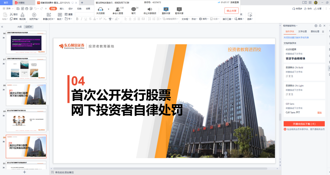 第四部分是讲师对《首次公开发行股票网下投资者管理细则》进行介绍,为同学们说明协会对违反规则投资者的惩戒措施。